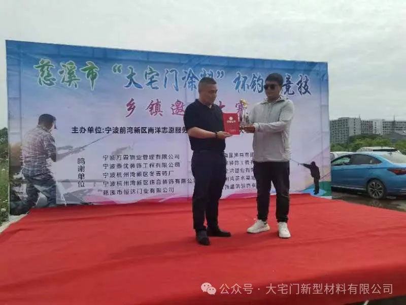 初夏时节,一场盛大的钓鱼竞技赛事在慈溪市拉开帷幕。大宅门涂料有限公司以其卓越的品牌影响力和对公益事业的关注,荣幸地成为本次“大宅门涂料杯”钓鱼竞技乡村邀请大赛的冠名单位。