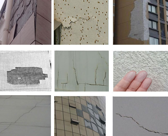 首先消除外墙隐患:彻底根治墙体开裂、空鼓、脱落、渗水等隐患,